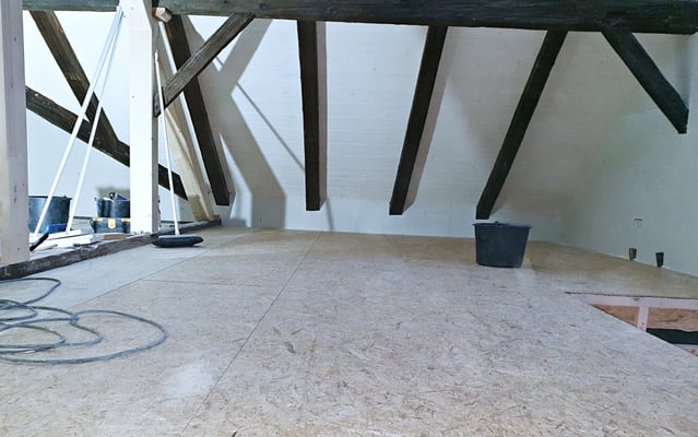 Bei diesem Projekt stand der Trittschallschutz sowie das Entknarren der bestehenden Holzbalkendecke im Vordergrund.