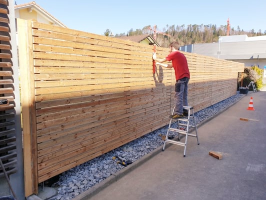 Montage der Sichtschutzwand aus Holz