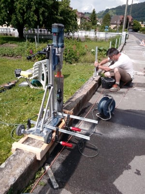 Kernbohrungen in Steilmauer zur sicheren Befestigung im Hangbereich