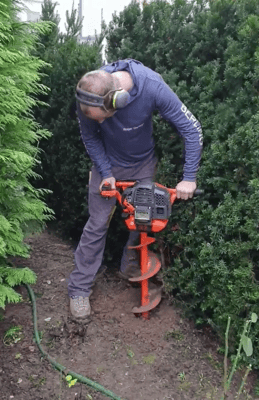 Erdbohrungen für Pfostenfundamente im oberen Bereich